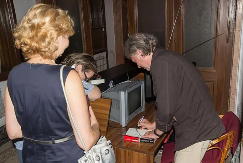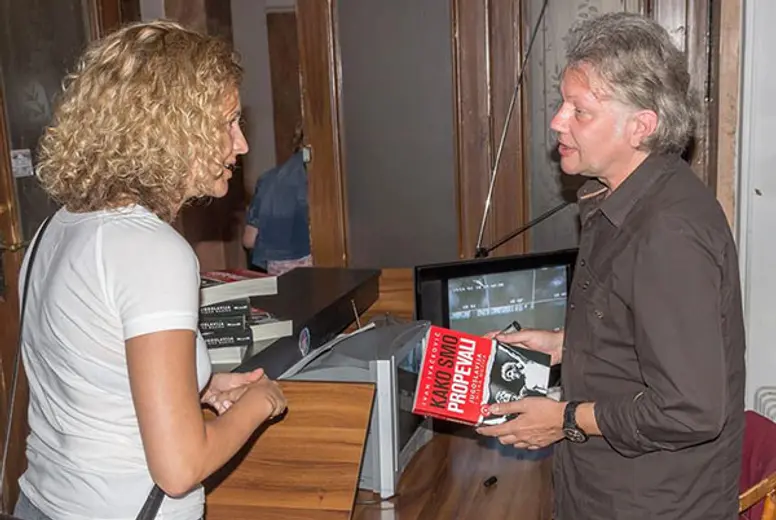 Posle promocije, Ivačković se družio sa posetiocima i potpisivao primerke knjige.