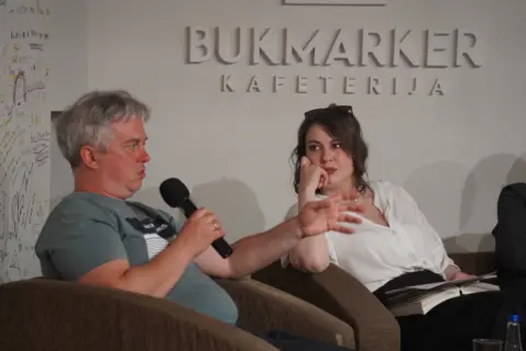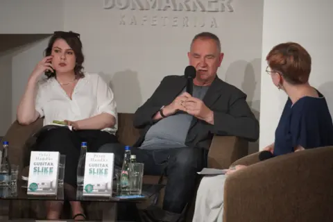 Prevodilac Žarko Radaković, novinarka Radio Beograda Sara Arsenović i pisac i književni kritičar Marjan Čakarević govorili su o tome zašto je „Gubitak slike ili Planinom Sijera de Gredos“ prva knjiga koju je autor nazvao „romanom“ – pikarskim, u ovom slučaju, kao i zbog čega je ova „moderna verzija Don Kihota“ ujedno i Handkeov književni manifest.
