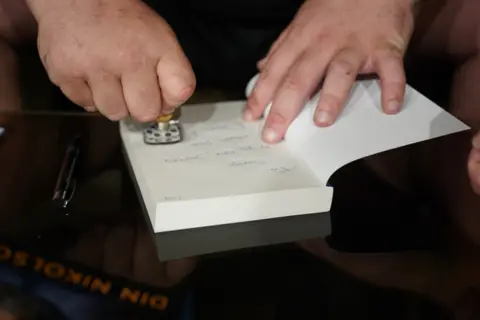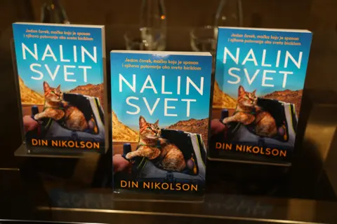 Din je stprljivo potpisivao svoju knjigu preko dva sata, razgovarao sa čitaocima, razmenjivao iskustva oko odgajanja Nale, ukazivao na značaj brige o životinjama... Svi su uz potpis dobili i pečat kao otisak Naline šape, jer je autorstvo obostrano, samo što je Din sve zapisao.