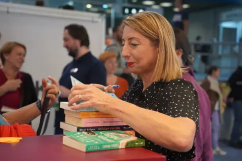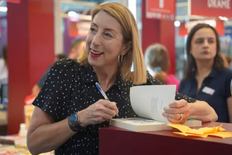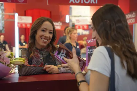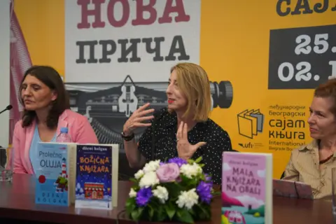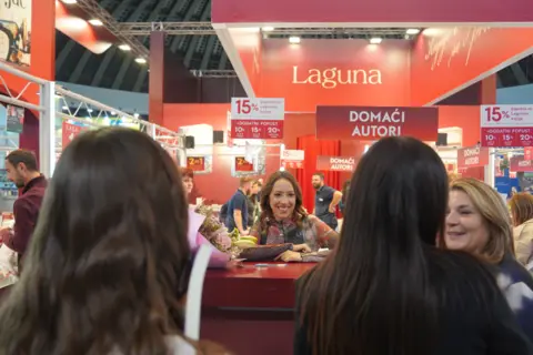 Autorka bestselera „Mala knjižara na obali“, „Božićna knjižara“, „Prolećna oluja“ i drugih, najpre se predstavila u okviru glavnog programa Sajma knjiga, a zatim je u večernjem terminu potpisivala knjige čitaocima na štandu Lagune.