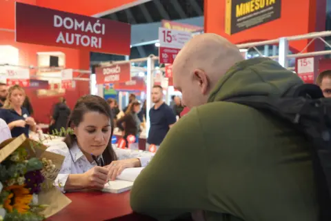 Najtraženiji naslov stranog autora na Sajmu knjiga je roman „Slika s morem“ Fredrika Bakmana, a od domaćih autora najviše interesovanje čitalaca izaziva „Krojač“ Jelene Bačić Alimpić i „Otac“ Bojana Ljubenovića.