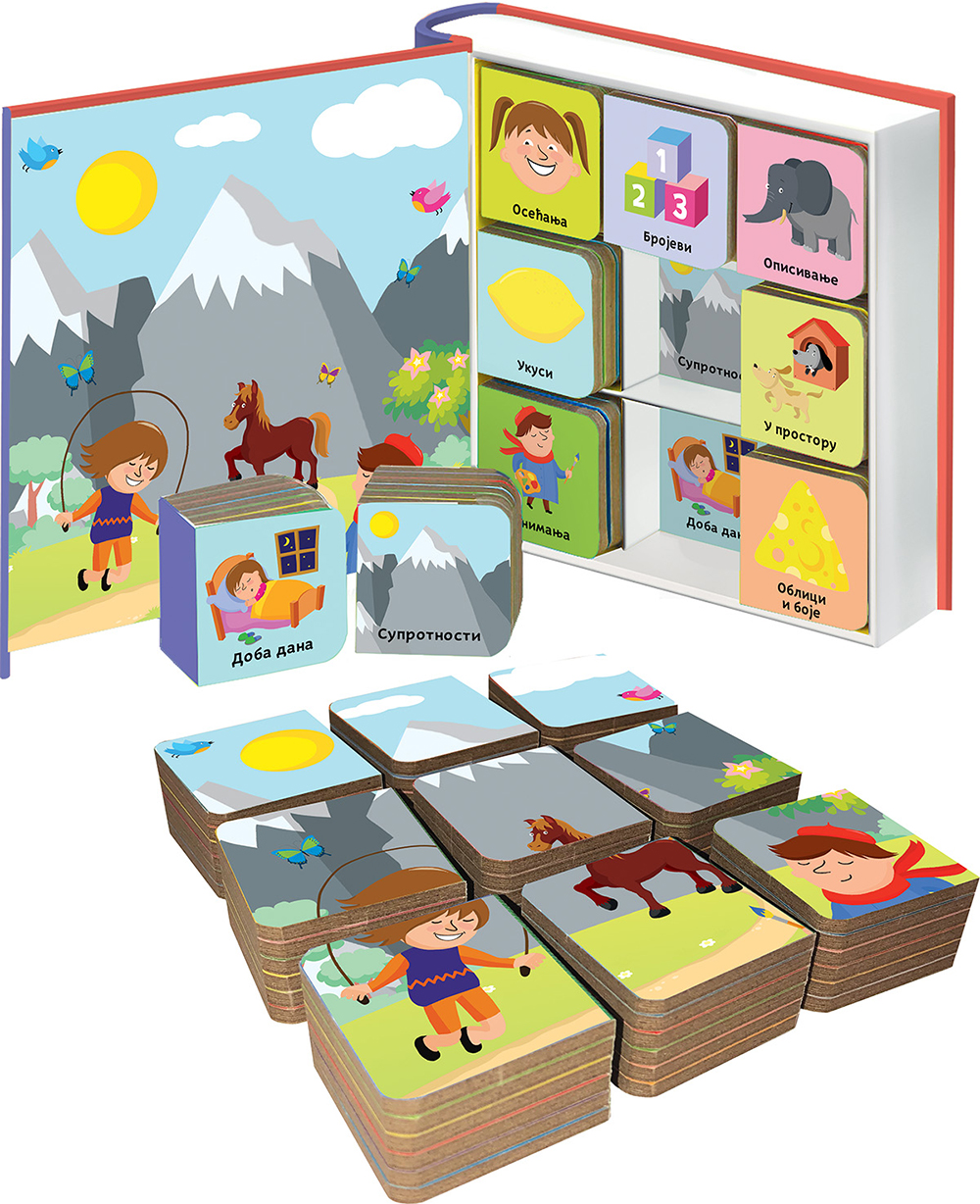 Ovaj veselo ilustrovani komplet od devet knjižica namenjen je mališanima koji stiču prva znanja o svetu u kojem žive. Knjige su napravljene da odgovaraju ručicama, a na njihovoj poleđini je slagalica koja će pomoći deci da uče kroz igru.